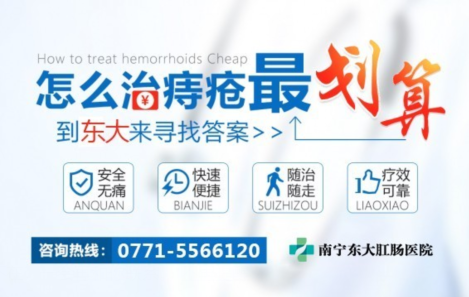 先进技术为依托,微创、恢复快,效果明显!很多患者认为治疗肛肠疾病都是采用传统疗法,效果不是很好,还会带来巨大的痛苦,的确是这样,传统疗法不但效果不明显,患者会感到难以忍受的疼痛,术后恢复的时间也比较长,但是在南宁东大肛肠医院,您的这些顾虑完全可以消除,先进的微创仪器彻底打消这些弊端,治疗肛肠疾病效果更好,过程更轻松。南宁东大肛肠医院采用的HCPT微创术是一套专门治疗肛肠疾病的技术,具有手术时间短、恢复快、疼痛轻等优点,可以帮助患者快速解决肛肠疾病的困扰。