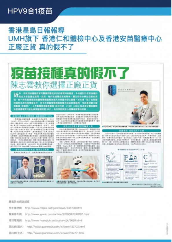 报道见报后,获各大医药及健康网站转载,转载阅读量超过6亿次!大家均认可香港安苗医疗中心的专业服务,相信可为接种者提供正版正货的疫苗产品,及专业贴心的接种服务。