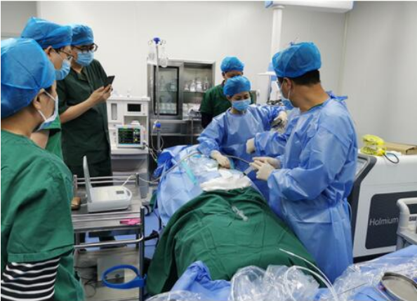 5月1日,患者经充分完善的术前准备后,手术顺利开展。一期手术进行50分钟后,右肾结石清除约三分之一,考虑剩余结石仍较多,继续手术,杨先生身体可能无法承受,郭振新主任决定终止手术,5天后行二期手术。5月7日二期手术如期进行,利用一期手术的通道,不出血,几乎没损伤,40分钟后,杨先生右肾结石完全清除。术后检查无残余结石,无梗阻,肾脏排泄正常。手术不留引流管,做到了无管化。
