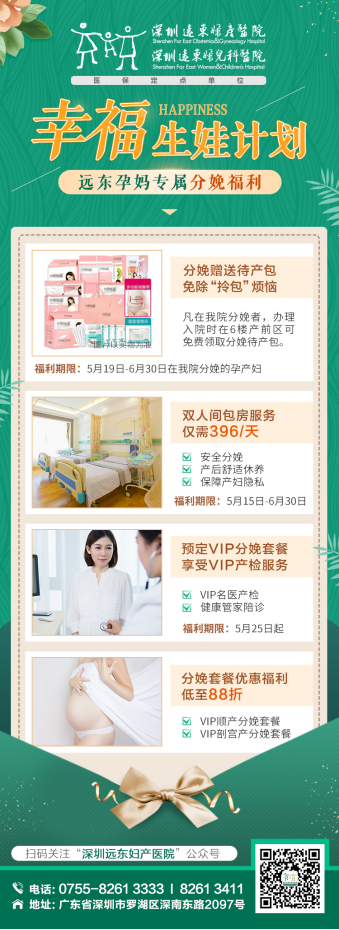 凡是在远东妇产医院分娩的孕妈妈,不管有没有在医院建册、产检,均可享受以下福利: