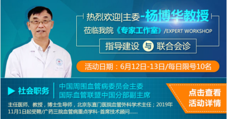 2019年11月,杨博华教授受聘我院血管病重点学科/首席技术顾问;同年12月,梅家才教授受聘我院血管病重点学科/技术帮扶专家;2020年5月,周毅平教授、梁永红博士、高一菁博士等血管病《专家工作室》在我院挂牌成立;为加快华南地区周围血管病重点学科建设,确保我院血管病《专家工作室》向着“专病·专攻·专精”的方向健康发展,我院血管病重点学科首席技术顾问(中国中周围血管病委员会主委、国际血管联盟中国分部副主席)杨博华教授决定:将于6月12-13日莅临我院血管病《专家工作室》指导学科建设与联合会诊,学科建设指导诊期间,每日开放10个专家会诊名额………