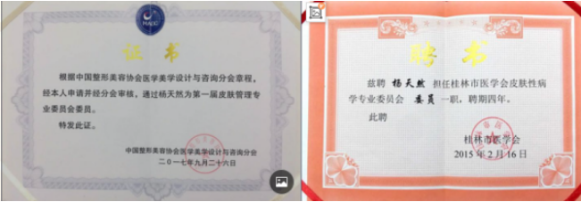 中国整形美容协会医学美学设计与咨询分会皮肤管理专家委员会委员、桂林市医学会皮肤性病学专业委员会委员、杭州华颜美容皮肤科医学带头人、国内知名皮肤美容医生杨天然主任从事整形美容皮肤美容的临床工作已经20余年。