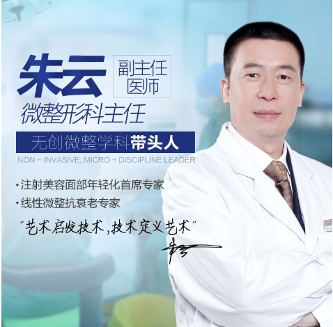 朱云,作微整形科主任,他毕业于第三军医大学,具有30余年的整形美容临床经验,20余篇专业学术论文发表,30000余例成功手术经验,7项国家、省部级科技进步奖,,同时,朱云专家凭借其独特的美学设计、的设计理念、精细的手术技巧、“一次手术,终身美丽”的实际手术效果,被评为“中国十佳杰出整形医师”。
