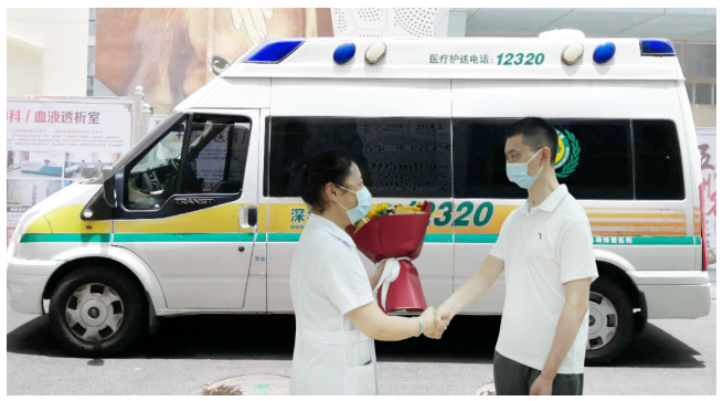 考虑到他大病初愈,左脚行走并不平稳,去火车站路途遥远又不方便打车,医院特意调配了一辆专车安全护送他。在告别时,这名患者连连回头,不断地表达心中感激并连声称赞医院太暖心了。