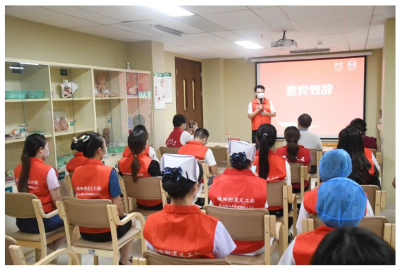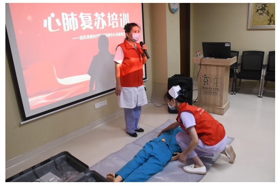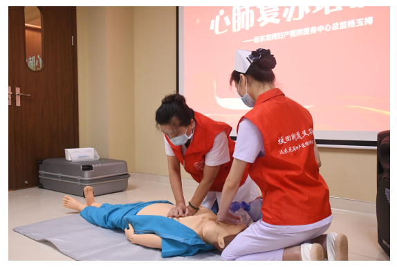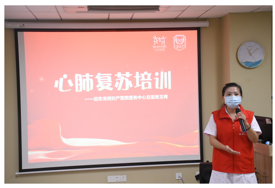 深圳远东龙岗妇产医院医务中心总监杨玉梅女士为义工成员讲解医疗急救知识——心肺复苏。