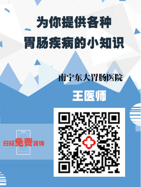 温馨提醒:南宁胃肠医院是南宁市胃肠专业医院,专病专治,以患者为中心,现在为了照顾更多的胃肠患者,推出胃肠科医生王医生的微信,免费咨询各种胃肠疾病,欢迎各位患者前来咨询。