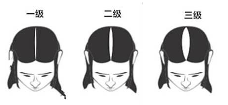 此外,总发量和发际线位置也会有所变化,按脱发程度由轻到重可以分为3级: