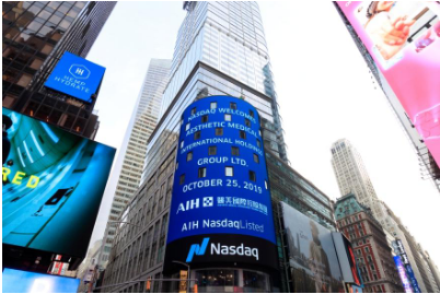 2019年10月25日,医美国际在纳斯达克证券交易所挂牌上市。上市时,医美国际已有21个美容医疗中心(包括19个全资或控股美容中心),遍布中国大陆15个城市、香港和新加坡。