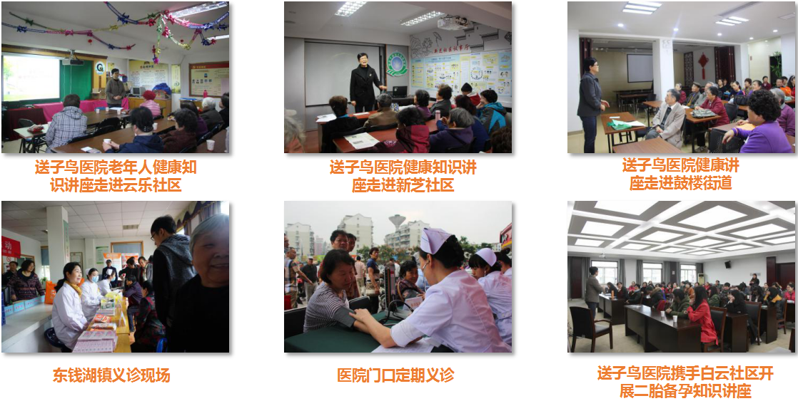 宁波送子鸟医院一直致力于关注宁波百姓的健康需求,普及科学知识。尤其是广大女性同胞的健康问题。自2015年开业以来,先后应宁波市妇联及各地方政府邀请为海曙区、鄞州区、北仑区、江北区等各街道、社区以及乡镇居民带来了近100场义诊和健康讲座,受众居民人数达10000人次以上。