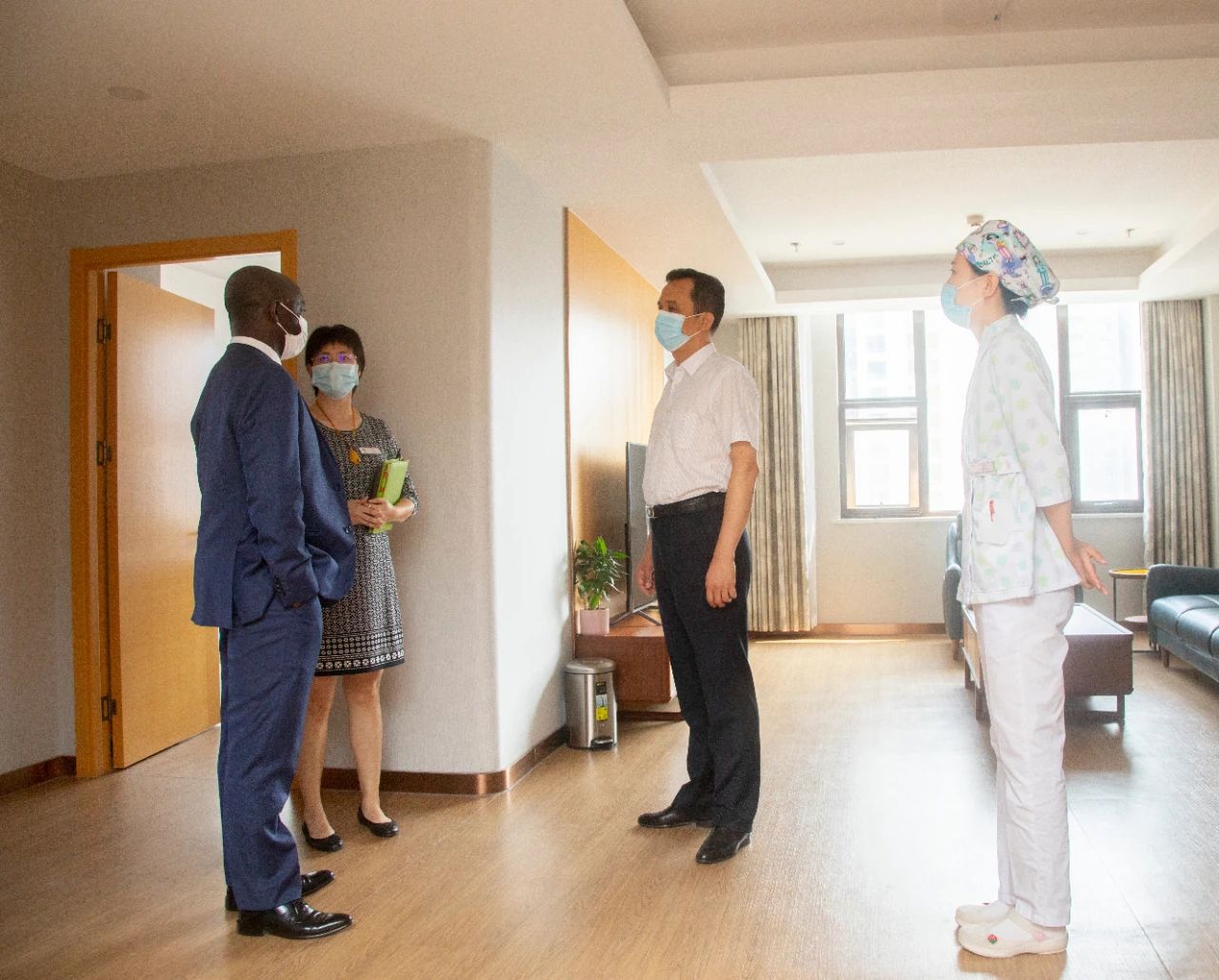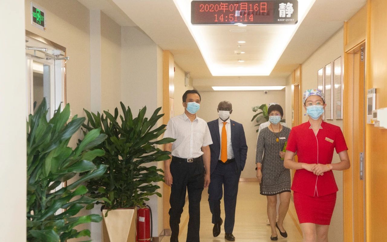 爱德华·博阿滕大使对北京五洲妇儿医院建院十六周年表示祝贺,感谢五洲妇儿医院为加纳驻华使馆及在华人士提供的医疗保障,并高度赞扬五洲医护团队的精湛医术和高尚医德。在参观了全新升级的北京五洲妇儿医院产科病房后,博阿滕大使对产科病房的高端配置、舒适环境赞不绝口,同时他也提出了进一步展开合作的意向,希望能够以中国的高端医院为模板,在加纳打造高端医疗服务,促进加中及非中合作进一步深入。