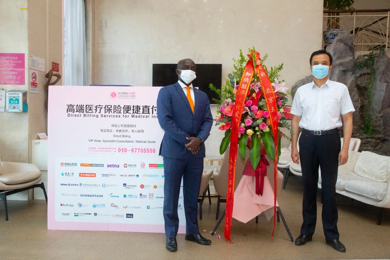 黄金雄总经理对大使先生的到来表示热烈欢迎,并对大使为北京五洲妇儿医院建院十六周年送上的祝福表示由衷感谢。他说,自2019年7月非洲驻华使节健康俱乐部成立以来,北京五洲妇儿医院为包括加纳在内的多家非洲驻华大使馆工作人员及各国在华商务人士提供了健康服务,希望大使先生多提宝贵意见和建议,五洲也将不断提升自身的医疗质量与服务水平,为各国驻华人士提供更加优质的健康服务。
