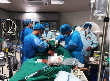 此时,厚街医院已为患者启动胸痛救治绿色通道,在梁先生被送到厚街医院后,医生以与死神赛跑最快的速度把患者送到ICU作进一步抢救。5分钟、10分钟……30分钟,经过医生心肺复苏以及机器持续心脏按压的救治下,梁先生仍然没有恢复心跳。据介绍,在医学上,一旦患者心跳停止超过30分钟,就可以宣告其死亡。但是厚街医院的医生没有选择放弃,仍然想尽一切办法救活患者。