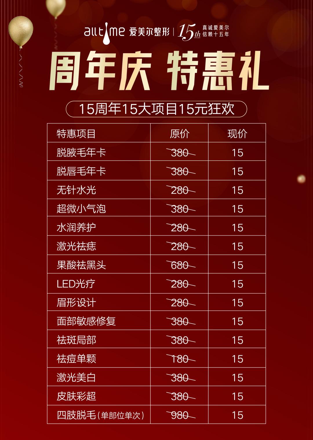 爱美尔15周年15大项目15元狂欢