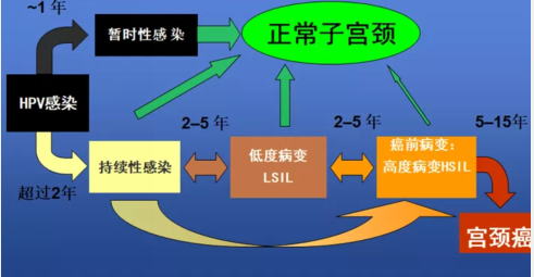 医生介绍,现已明确宫颈癌罪魁祸首是HPV持续感染(同一型别HPV感染大于2年),持续感染高危型HPV,宫颈会慢慢(约5-10年)发生癌前病变,后从量变到质变,慢慢(约5-10年)进展为宫颈癌。