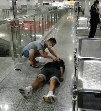 8月3号下午13:40,王海兵医生在松山湖北站候车,准备坐城轨到常平然后去广州。突然,在他座位后面有一男士站起来大叫一声,然后直接摔倒在地上,手机也摔在一边,口吐白沫,眼睛上翻,脸色青紫,四肢抽搐!就几秒钟的时间,他就进入了昏迷状态!