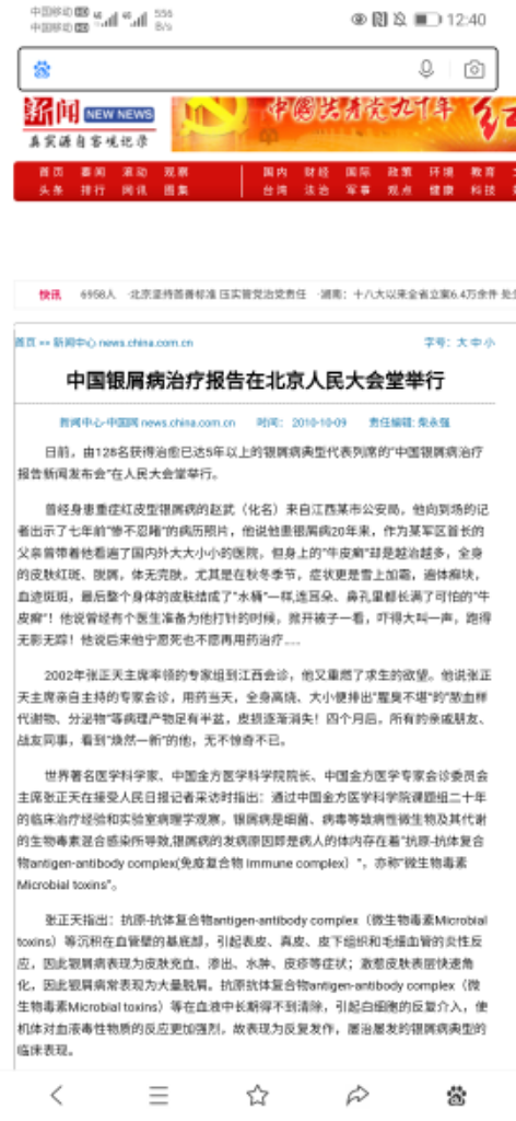 中国网新闻曾于2010年报道了中国张正天医疗集团专家委员会银屑病专家课题组的科研成果:由128名获得治愈已达5年以上的银屑病典型代表列席的“中国银屑病治疗报告新闻发布会”在人民大会堂举行。