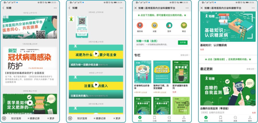 此外,荔湾区慢病管理中心还利用医康互联旗下自营品牌“知糖”微信公众号,为居民提供院外、线上获取慢病防治知识和健康管理服务的渠道,引导居民使用远程问诊、处方配药、查看报告等多项实用功能,逐步实现慢病患者诊疗方案个体化、精细化的目标。