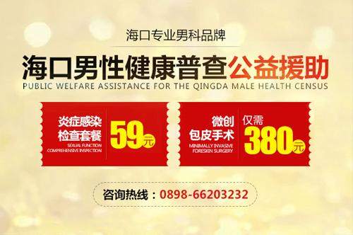 海口仁爱医院设有59元公益普查活动,有尿频尿急、尿痛、尿道口红肿、排尿困难、腰痛、尿道口瘙痒等症状的人群可以申请检查。医生提醒:一次精准检查胜过十次盲目治疗,身体不适早检查,切勿私自用药。