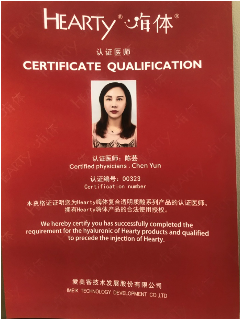 成就斐然的陈芸医生在繁重的工作之余,仍投入大量精力,不断更新自己在皮肤医学领域的专业技术和理论,在美学上的高超造诣,以制造美、传播美为己任,用专业的眼光定制专属的美带给女性,经过层层考核,陈芸医生最终获得嗨体产品系列认证医师。
