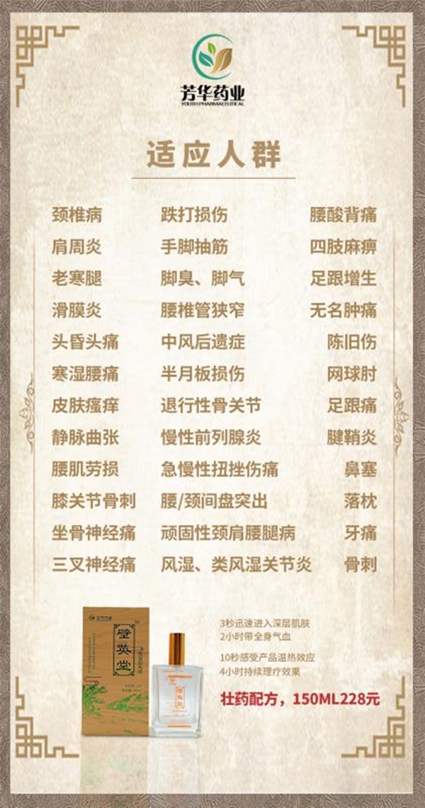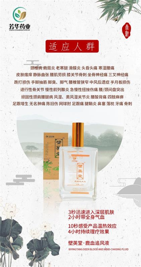 经过这么多年的研究和实验,壁英堂鹿血追风液就是我们的古方创新和法宝,凝聚了我们团队的精血和智慧,获得无数顾客的好评和青睐。关节疾病会带给患者的健康困扰是不容忽视的,很多风湿病人都会陷入极大的健康危机难以解脱。患者瘫痪在床会给家庭带来很多负担,需要有不少的劳力来照顾他们的日常生活,风湿病反复发作后会引起病变如心脏受到损坏,病从出现心慌、气短、消瘦、多汗等,形成风湿性心脏病。这款追风液就有效地保护了人体软骨(俗称关节)和硬骨(俗称骨质)的健康。