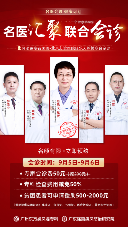 因患者常年保守治疗,久治不愈丧失信心,不敢尝试新的技术延误病情,我院风湿免疫名医团+北京友谊医院陈乐天教授特开展联合会诊,一站式解决疼痛、关节受限、并发症等难题,提升康复率降低复发率。