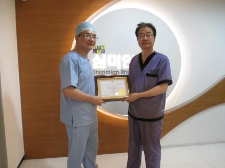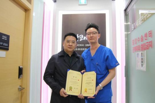 ↑张小川院长和韩国鼻整形泰斗郑东学博士同台手术合影