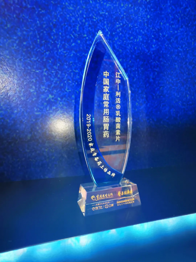 荣获“2019-2020家庭常备药上榜品牌(肠胃类)”