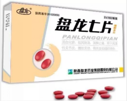 盘龙七片是我国著名老中医、骨伤科专家王家成老先生所献秘方,经科学研制而成的复方中成药。组方中当归、丹参既能活血,又可养血,更有祛瘀之功,还可改善局部血液濡养;重楼、牛膝具有活血祛瘀、消肿之效,使瘀血去,新血生;支柱蓼、八里麻、竹根七、羊角七、过山龙祛风湿、舒筋活络、消肿镇痛;老鼠七、白毛七、祖师麻理气活血,消肿止痛,增强祛风湿、散瘀之力;红花、乳香、没药有活血祛瘀、行气止痛之功。