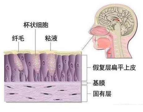 从鼻腔到终末细支气管的黏膜,都有纤毛上皮细胞,以粘附异物颗粒。纤毛上皮细胞的纤毛浸泡在分泌黏液中,不断摆动。如果它无法正常运作,纤毛活动能力的降低,防御功能下降,呼吸道便容易产生病变,诱发细菌病毒感染,出现过敏性鼻炎、鼻窦炎或支气管炎等疾病。