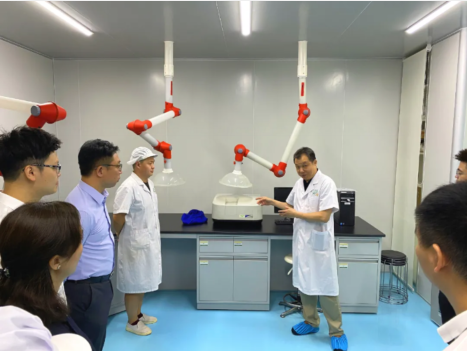 在今典精方定性定量中药饮片实验室,黄华强总经理向集团领导一行重点介绍了定性定量中药饮片从中药材原料选取到生产、质量控制的全过程。叶董对今典精方药业实验室的建设水准、研发能力以及今典精方人对质量精益求精的精神表达了高度的赞赏,同时表示,晟田集团也在寻找更多志同道合的企业伙伴谋求共同发展。