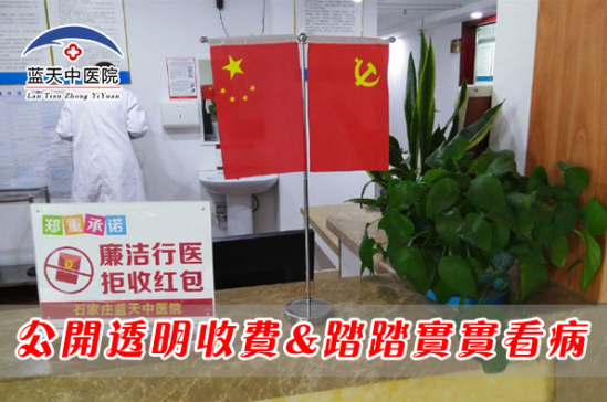 在石家庄蓝天中医院,一切诊疗费用均参照按照国家相关标准执行,并实行24小时滚动公示,并接受相关主管部门的监督指导,并在女性朋友们不要担心会存在隐性消费、过度诊疗的情况。