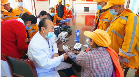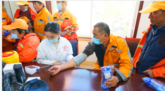 济南中医静脉曲张医院医护人员为环卫工人测量血压、血糖