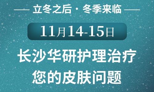 本次活动的时间为11月14-15日,即日起可以预约,建议预约到诊,避免来院无号空跑一趟!(*本次活动最终解释权归长沙华研皮肤病医院所有)