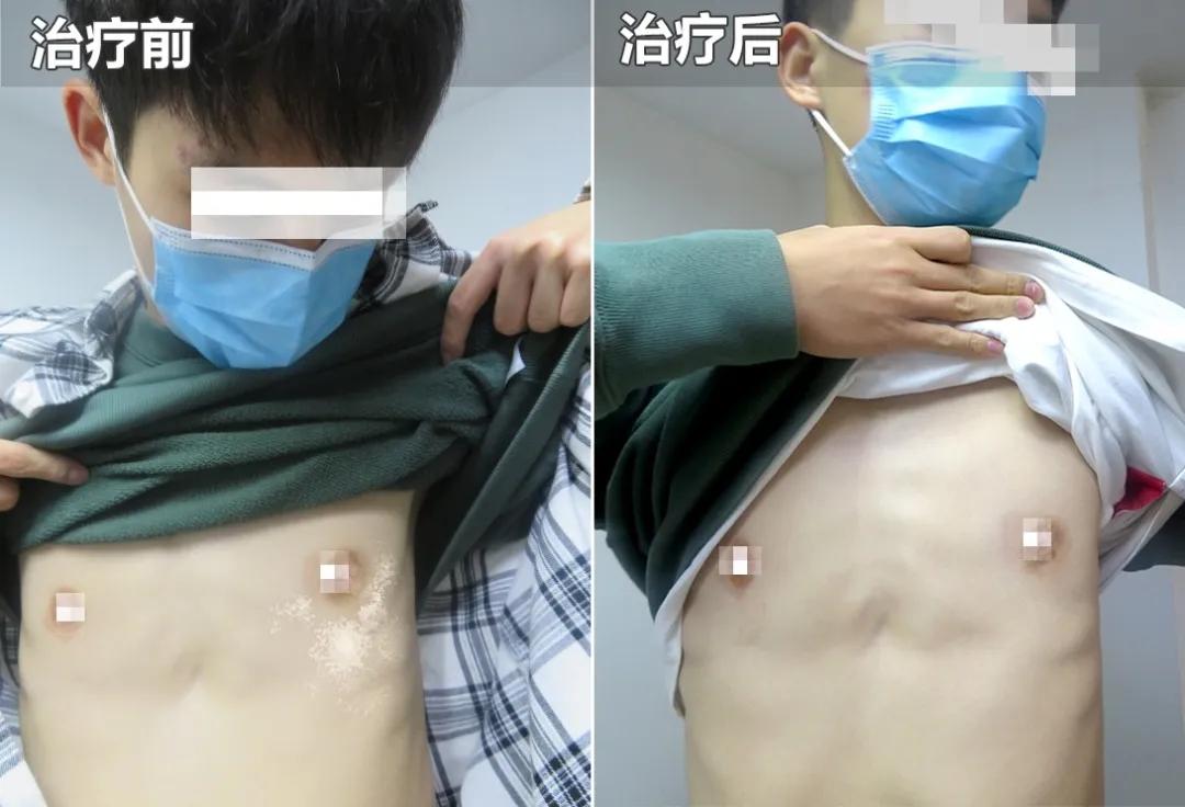 于是和白癜风抗争的日子开始了,由于学习任务重,小凯用药后白斑有所恢复后就中止了治疗。可是没多久,白斑又卷土重来,慢慢的胸部也出现了白斑,反反复复三四年,使得小凯的心理、情绪等方面都受到了极大的折磨,年轻充满朝气的脸庞也渐渐黯然失色。
