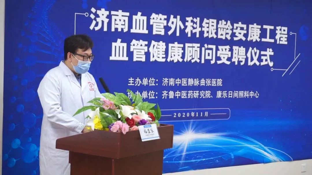 为了解决40岁以上中老年朋友血管疾病的诊疗问题和疗养需求,2020年11月21日下午两点,由济南中医静脉曲张医院联合齐鲁中医药研究院、康乐日间照料中心共同成立的“济南血管外科银龄安康工程”的健康顾问受聘仪式在济南中医静脉曲张成功举办,受聘仪式上聘请了首都医科大学血管外科副主任医师、医学博士杨盛家主任为济南血管外科银龄安康工程的血管健康顾问,为患有血管疾病的中老年朋友提供专业诊疗。