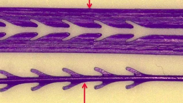 ▲蓝钻鱼骨线压制而成的钝性倒刺示意图