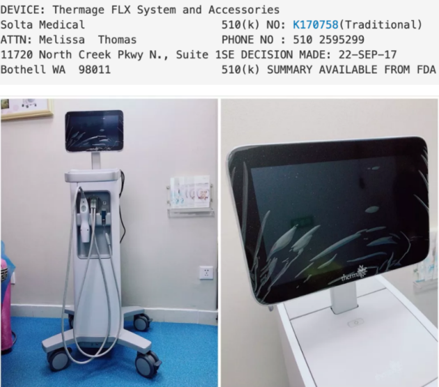 目前国内市场主推设备是第五代热玛吉,五代热玛吉因为没有获得CFDA授证,经常被竞争对手拿来说事。而事实上,五代热玛吉是属于高频皮肤美容仪,不需要获得CFDA的认证。在2013年CFDA发布的食药办械管【2013】31号一文中,“高频皮肤美容仪”划入不作为医疗器械管理的种类中,2017年五代热玛吉面世,因此按照CFDA新的要求,它不再需要按医疗器械注册了,这也是为什么它不需要通过CFDA认证的原因。