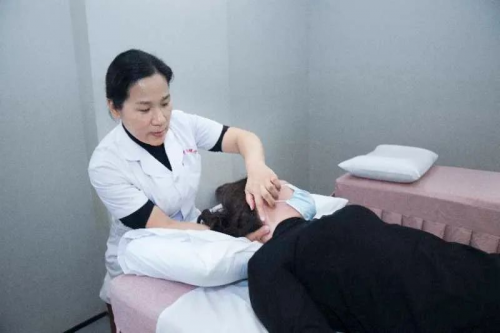 图为非物质遗产“平衡推拿术”传承人张瑞霞,为患者治疗调理——摄影记者许俊奇摄