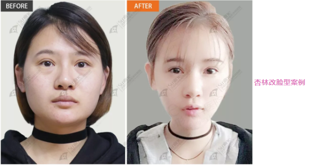 杏林改脸型案例表现:下颌骨宽大,但耳朵下方的下颌角不发达适中偏小,下巴呈一字形的棱角分明,或是圆形,看起来很沉闷的感觉。俗称“马脸”。