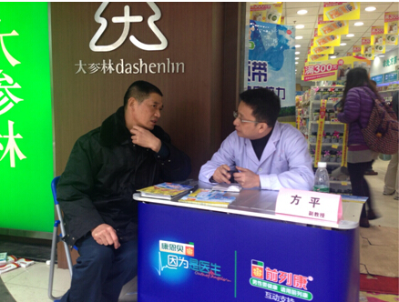 12月7日在广东大参林连锁药店五羊邨店(广州市越秀区寺右新马路136号)举行的前列康“蓝领带男性健康接力”大型公益巡回义诊活动,吸引了众多社区居民前去咨询。