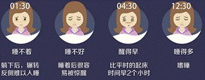 睡不着,入睡困难,辗转反侧;睡不深,睡眠多梦,易惊醒,觉醒次数多,睡眠时间低于6小时;睡得累,醒来后有疲倦感,情绪波动大,注意力、记忆力减退,思维迟缓。有上述症状者均属于失眠。
