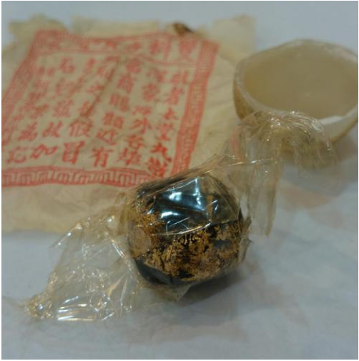 保存了五十年的白凤丸打开,颜色香味甚至旧有的金泊都如同新鲜出炉, 这就是由材料至包装保存认真的一大见证