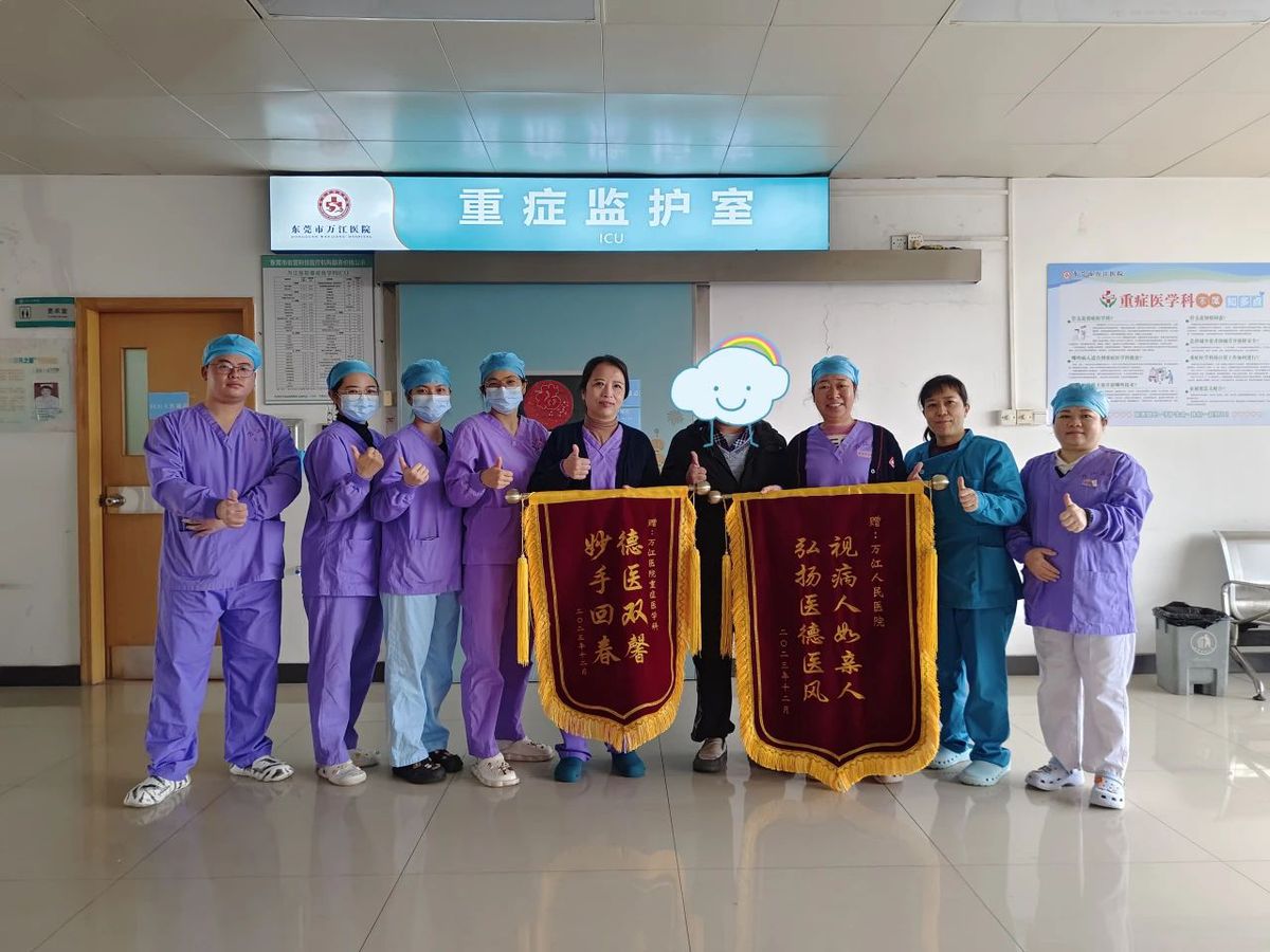 12月18日,家属给ICU医护团队送来锦旗以表感谢。