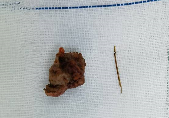 右侧为手术取出的竹签(图片由清华长庚医院提供)