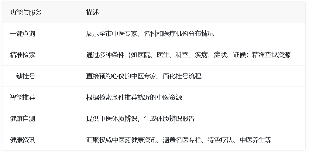 - 权威资讯:提供海量原创且权威的中医药健康资讯,满足市民的科普需求。