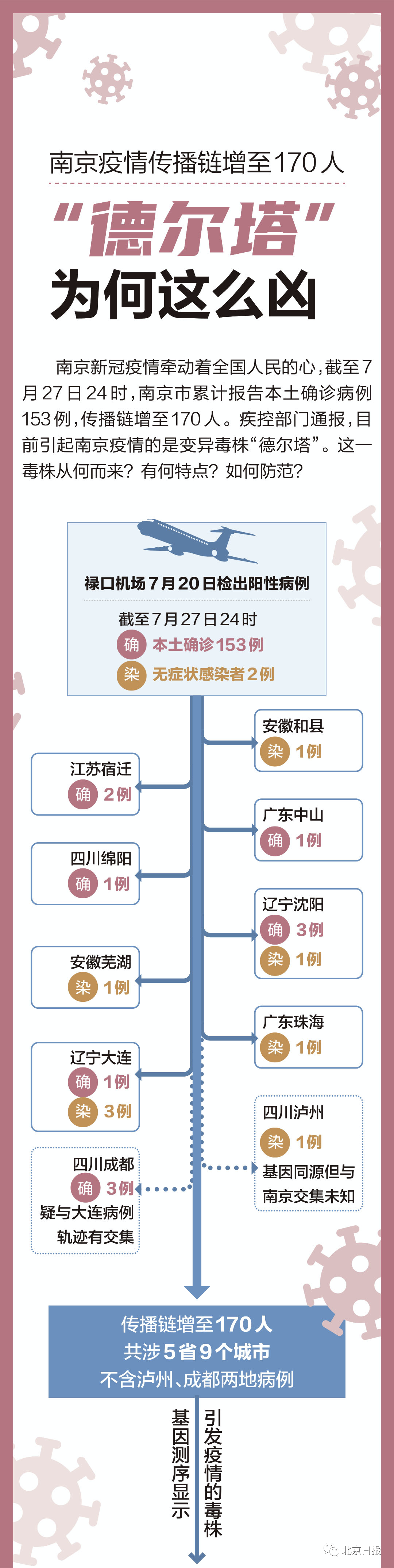 7月20日至27日,南京市累计报告本土确诊病例153例,其中轻型81例、普通型68例、重型4例。