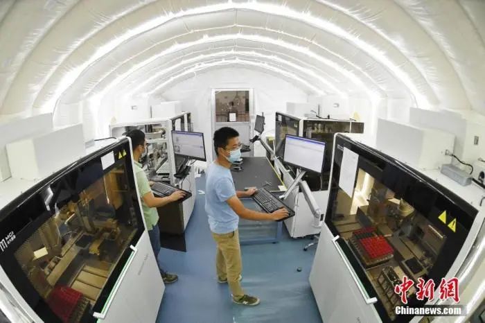 7月26日,南京“火眼”实验室正在南京国际博览中心加紧搭建,工作人员调试设备。中新社记者 泱波 摄