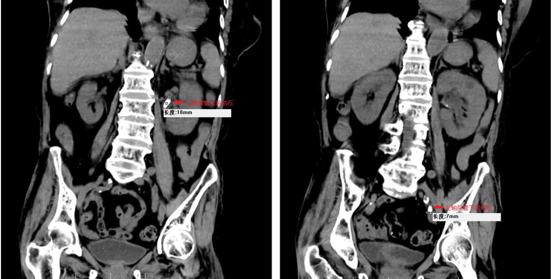 影像检查显示患者左输尿管上下段多发结石,脓性分泌物已形成压力性喷涌。医疗团队面临两难抉择:传统取石术对高龄多脏器衰竭患者风险极高,而持续感染将加速多器官功能崩溃。泌尿外科果断采取"经尿道左输尿管支架置入术",通过微创技术建立脓液引流通道,成功实现肾盂压力梯度释放。