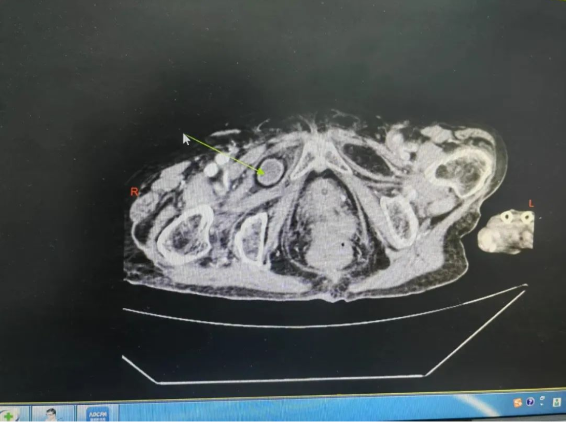 患者因剧烈腹痛腹胀急诊入院时,影像检查显示右侧闭孔嵌顿性疝引发急性肠梗阻,嵌顿肠管已呈现绞窄性坏死征象。面对高血压3级、冠脉多支病变、慢性阻塞性肺疾病等多重高危因素,医疗团队启动MDT应急机制:麻醉科定制闭环式靶控输注方案,运用血流动力学监测技术实现循环精准调控;影像团队通过薄层CT三维建模锁定直径0.8cm疝环解剖位置;重症医学科构建围术期呼吸支持及容量管理模型。经老年综合评估系统(CGA)量化风险指数后,手术团队果断决策实施限期手术。