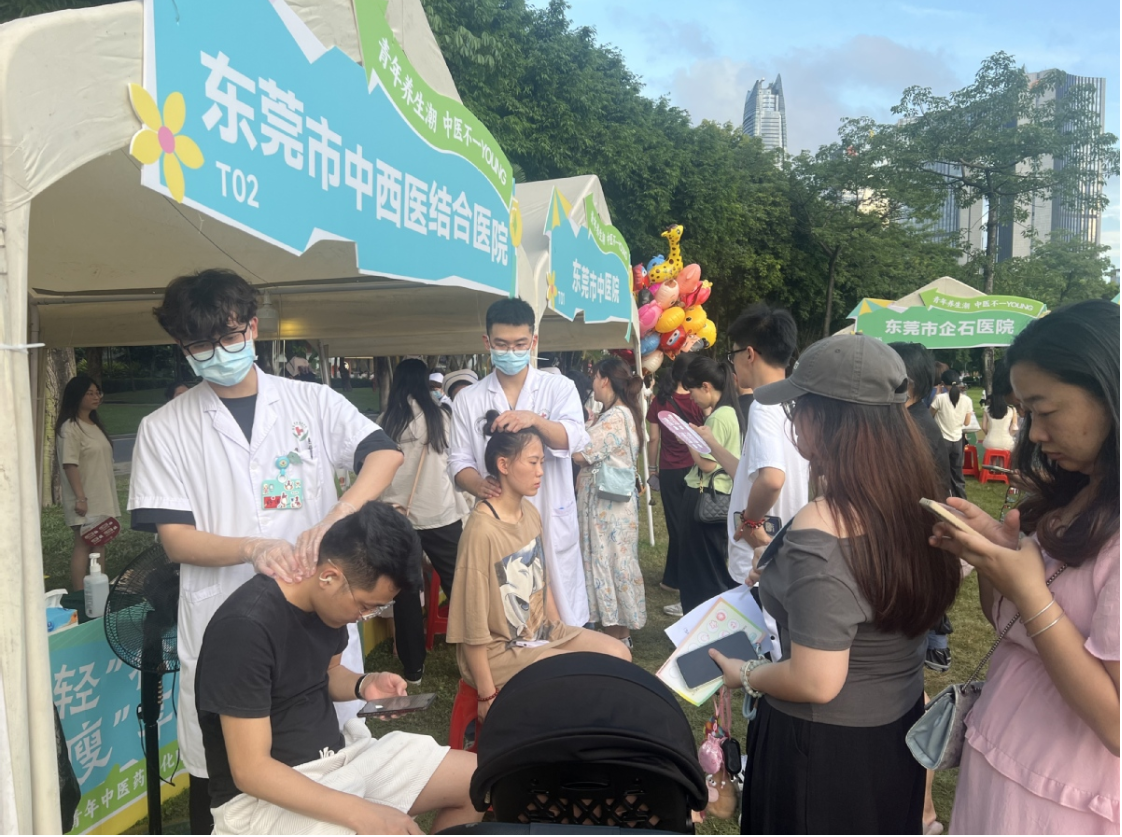 铜秤砣在汉服医师指尖轻移,党参、茯苓在少年掌心渐次排开。6月22日入夜,东莞中心广场南草坪蒸腾着艾草氤氲,为期三天的青年中医药文化"四季潮集"夏季篇迎来收官时刻。这场由市卫健局联合五大医院打造的盛会,集结了22个特色展位——市人民医院的体质辨识仪前排起长龙,妇幼保健院的耳穴贴敷区聚集着熬夜办公族,非遗传承人正教孩童将丁香、薄荷填入丝缎香囊。穿行其间的中医药健康宣传使者们,随身扩音器播放着《本草纲目》电子混音版,传统与现代在此奇妙交融。
